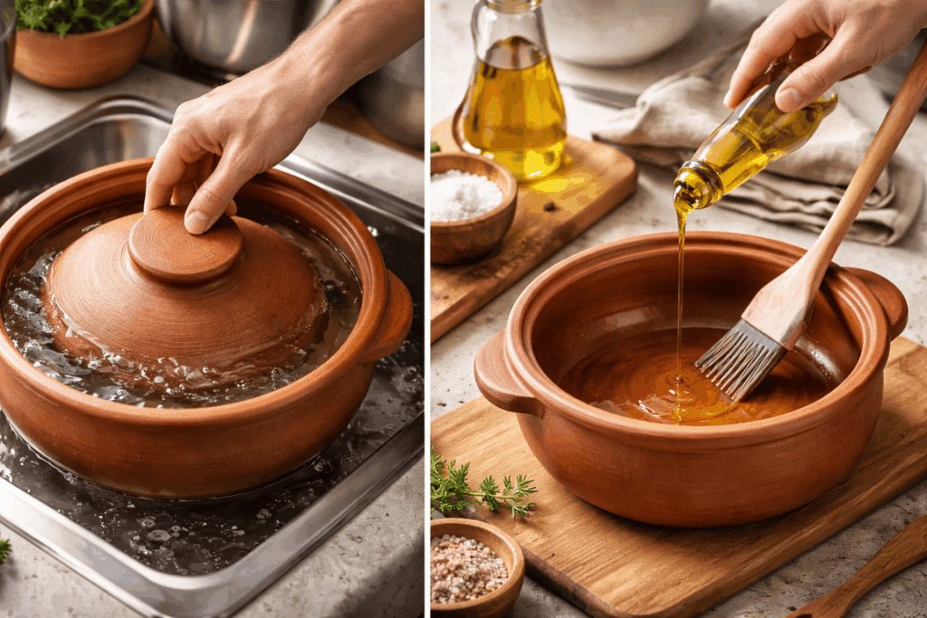 Enquanto panelas de ferro precisam de uma camada mais robusta de óleo, as de cerâmica exigem um processo mais delicado. Já as de pedra sabão e barro envolvem etapas adicionais como hidratação e aquecimento gradual.