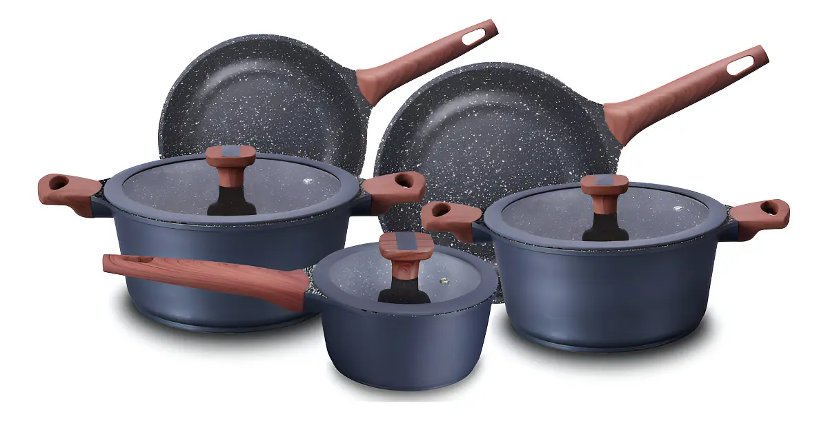 Um conjunto pensado para quem quer mais durabilidade sem abrir mão da praticidade no dia a dia. O destaque fica para a estrutura reforçada e o revestimento cerâmico marmorizado, que melhora a antiaderência.