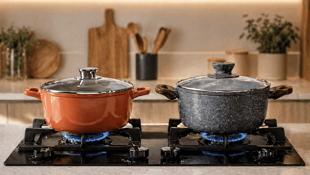 Ao longo deste guia, você vai entender se panela de granito é segura, quando ela compensa mais do que outras opções e o que realmente observar antes de comprar. Assim, fica muito mais fácil decidir se a panela de granito vale a pena para a sua rotina.
