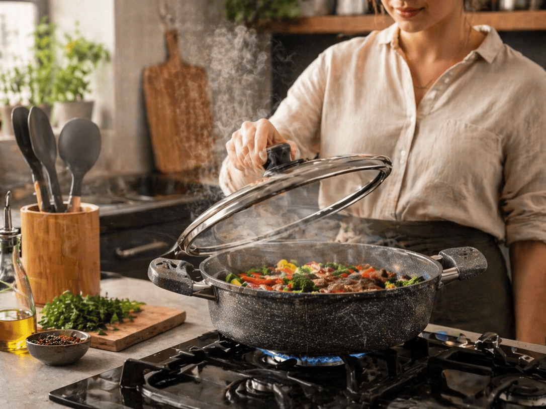Ainda assim, a durabilidade real depende de três fatores: fogo moderado, utensílios corretos e lavagem sem abrasivos. Mesmo a melhor panela de granito perde desempenho antes da hora se for tratada como panela comum de alumínio cru.