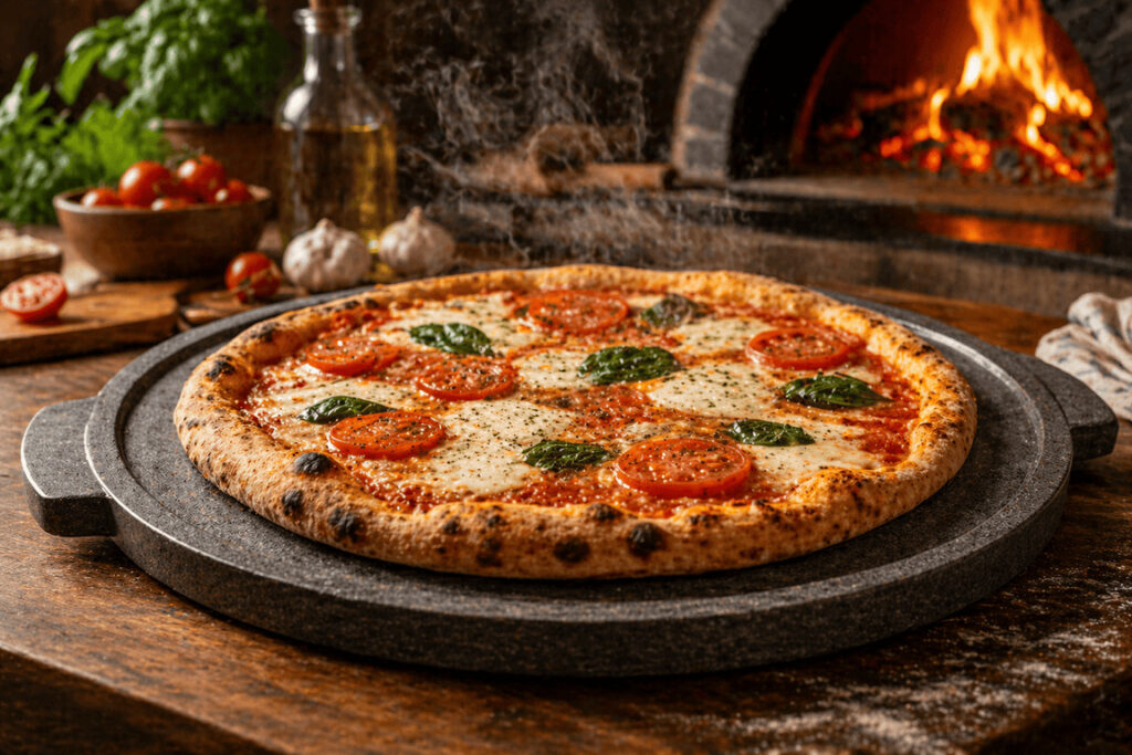 Se você busca uma pizza com padrão de forno à lenha em casa, a forma de pedra é indispensável. Ela absorve a umidade da massa enquanto assa, resultando em uma base extremamente crocante e um recheio suculento, superando qualquer forma de metal perfurada.